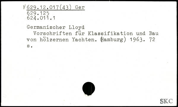 Germanischer Lloyd Vorschriften für Klassifikation und Bau von hölzernen Yachten. Hamburg) 1963.
