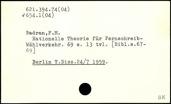 Rationelle Theorie für Fernschreib-Wahlverkehr0