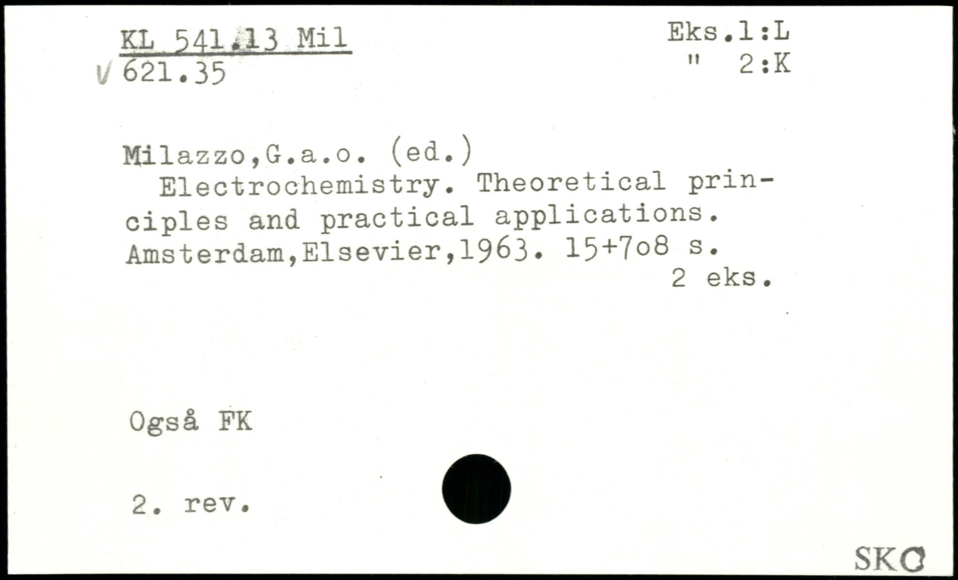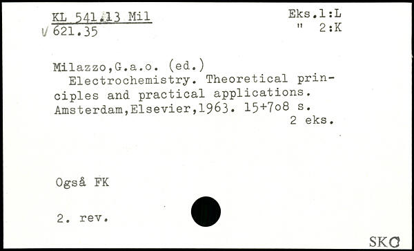 . Sil.& " 2:K Milazzo,G.a.o. (ed.) Electrochemistry. Theoretical principles and practical applications.