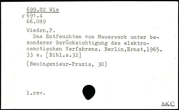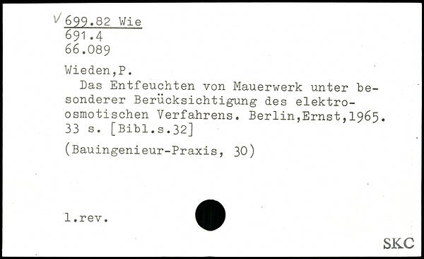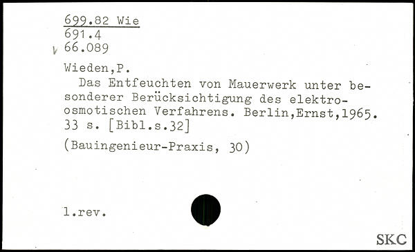 Pas Entfeuchten von Mauerwerk unter besonderer Berücksichtigung des elektroosmotischen Verfahrens.