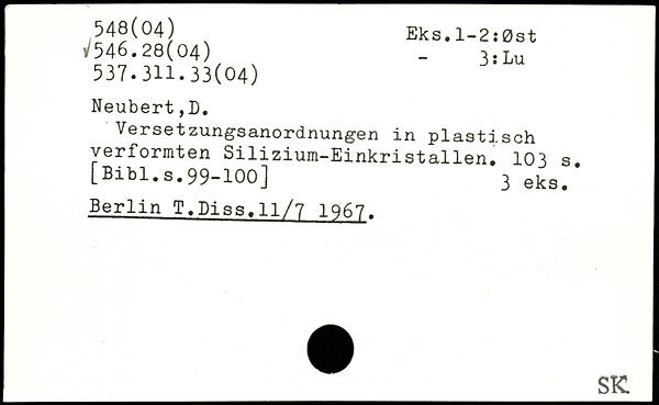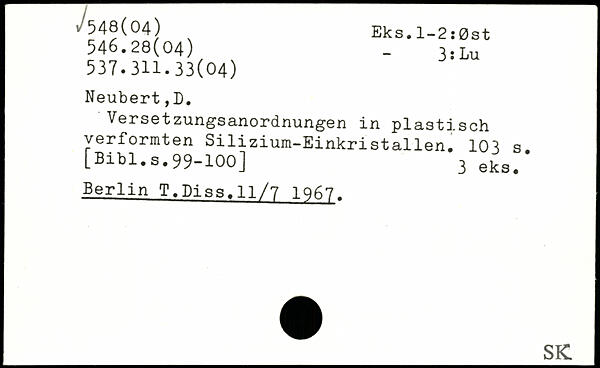 Versetzungsanordnungen in plastisch verformten Silizium-Einkristallen.