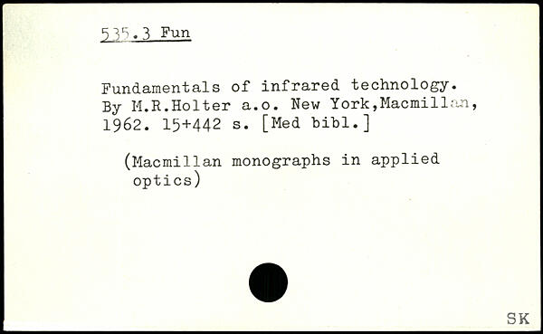 Fundamentals of infrared technology. By M.R.Holter a.o.