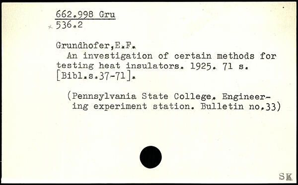 Grundhof er,E. F. An investigation of certain methods for testing heat insulators, 1925.