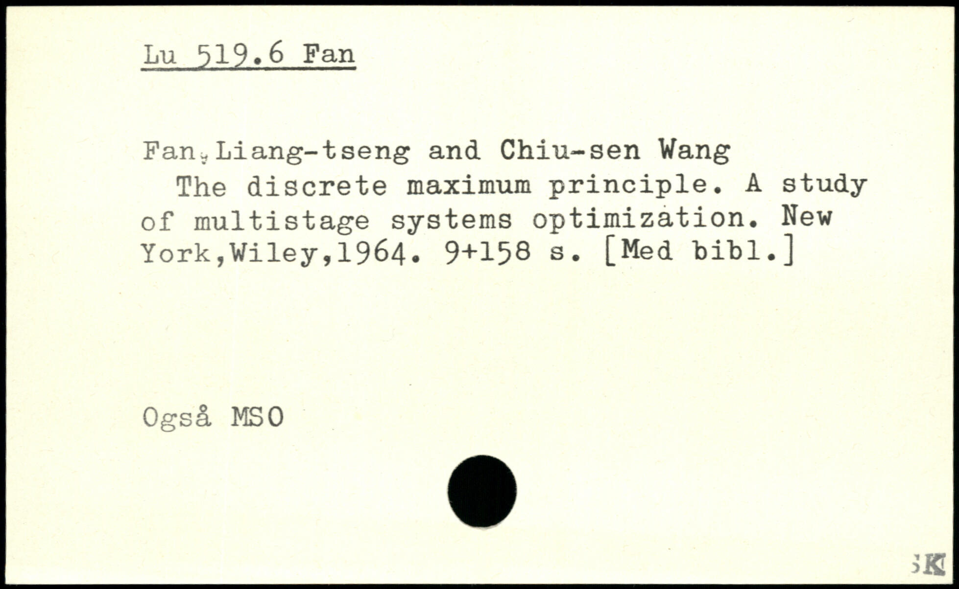 Pan-Liang-tseng and Chiu-sen Wang The discrete maximum principle. A study of multistage systems optimization.