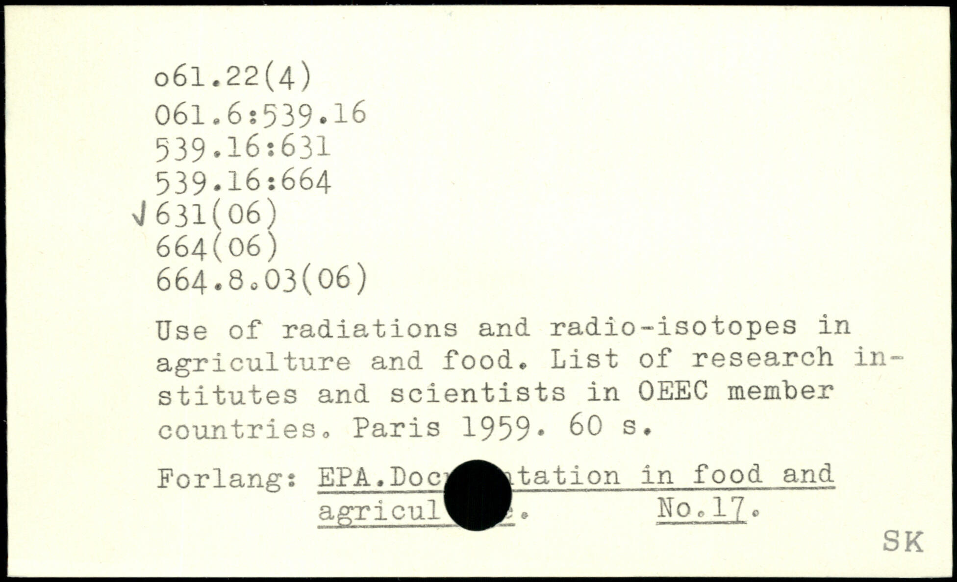 Use of radiations and radio-isotopes in agriculture and food. List of research institutes and scientists in OEEC member countries.