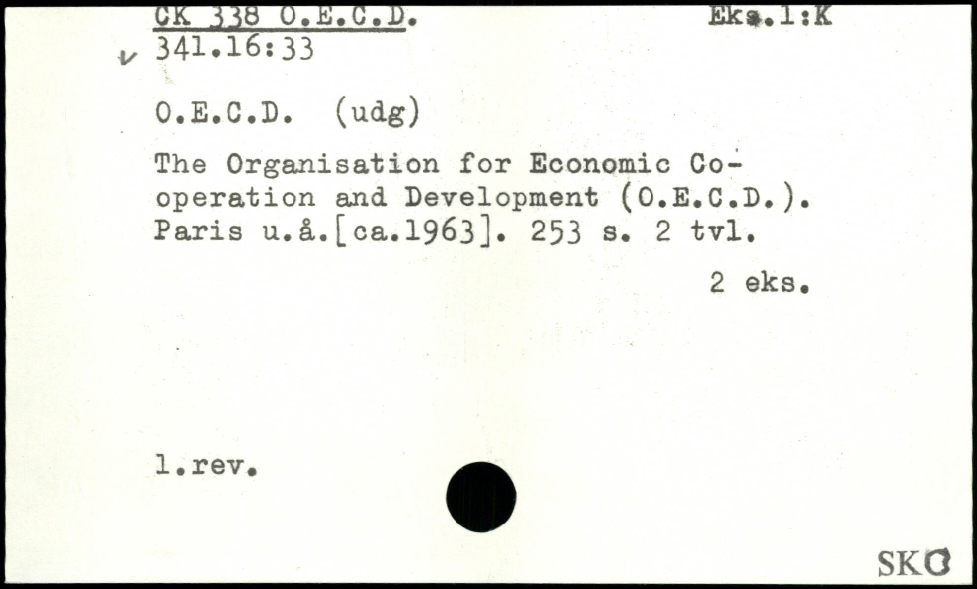 -ÜK -tik,.lsK V 341.16:33 O.E.G.D. (udg) The Organisation for Economie Cooperation and Development (O.E.C.D.). Paris u.â.[oa.1963].