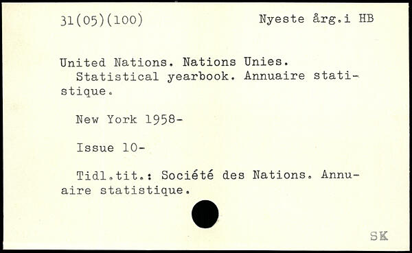 United Nations. Nations Unies. Statistical yearbook. Annuaire statistique.