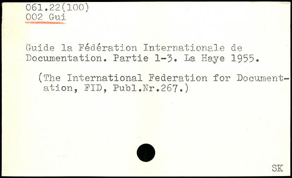 Guide la Fédération Internationale de Documentation. Partie 1-3.