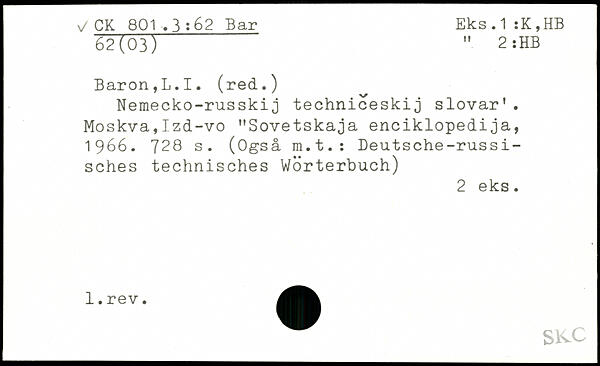 Nemecko-russkij techniceskij slovar'. Moskva,Izd-vo "Sovetskaja enciklopedija, 1966.
