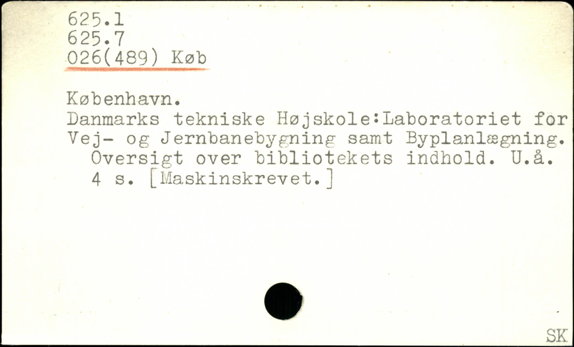 Danmarks tekniske Højskole:Laboratoriet for Vej- og Jernbanebygning samt Byplanlægning. Oversigt over bibliotekets indhold. U.å.