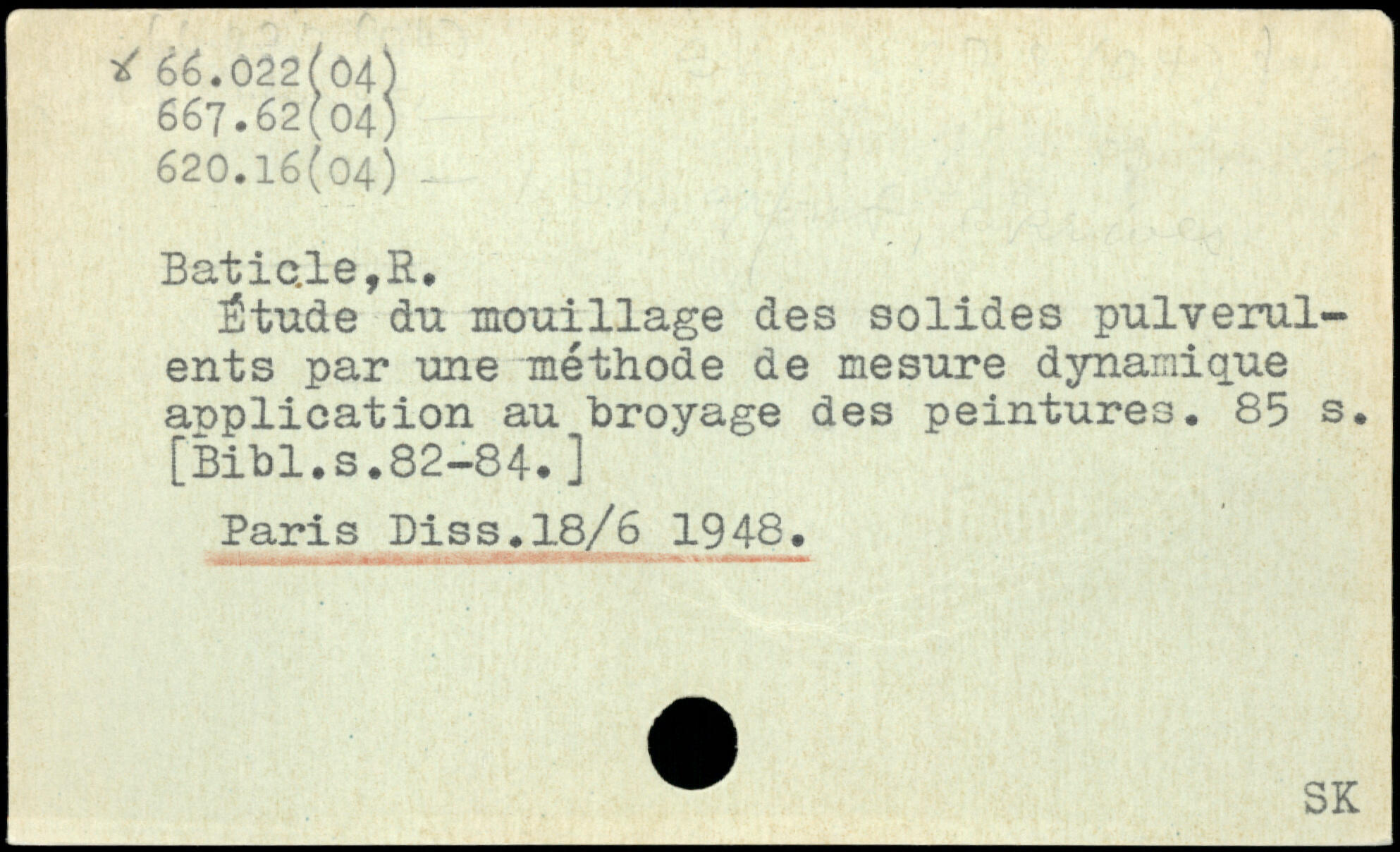 Batiçle,R. Étude du mouillage des solides pulvérulents par une méthode de mesure dynamique application au broyage des peintures.