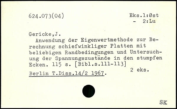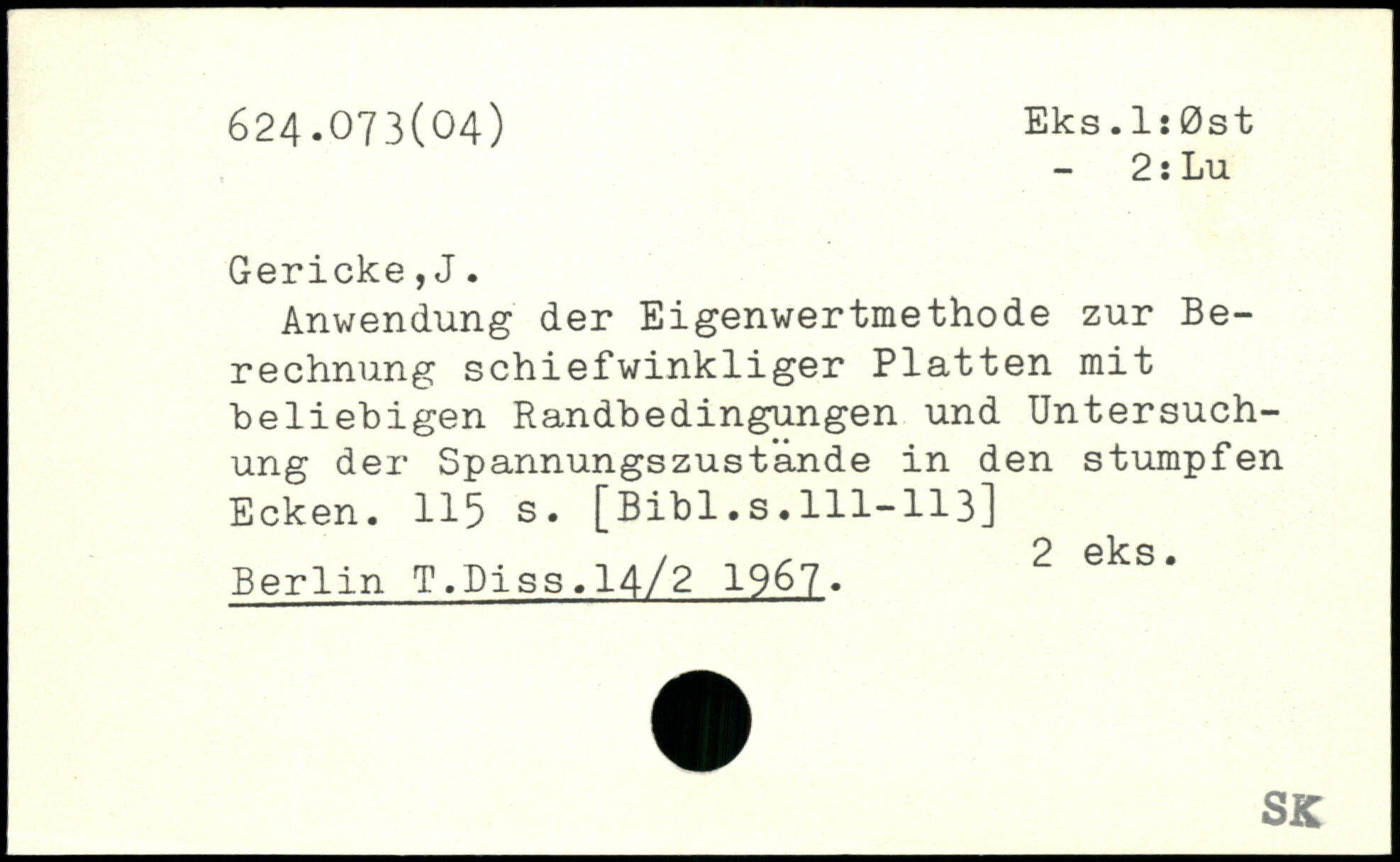 Anwendung der Eigenwertmethode zur Berechnung schiefwinkliger Platten mit Beliebigen Randbedingungen und Untersuchung der Spannungszustande in den stumpfen Ecken.