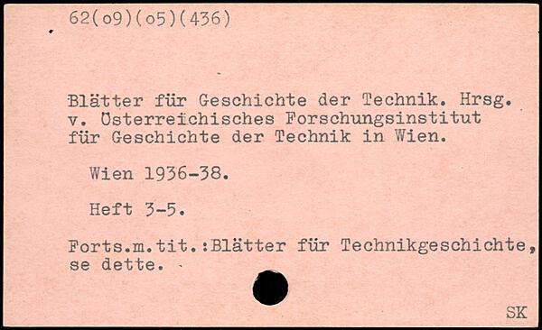 Blätter für Geschichte der Technik. Hrsg, v. österreichisches Forschungsinstitut für Geschichte der Technik in Wien.