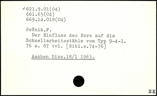 Der Einfluss des Bors auf die Schnellarbeitsstähie vom Typ 9-4-1.
