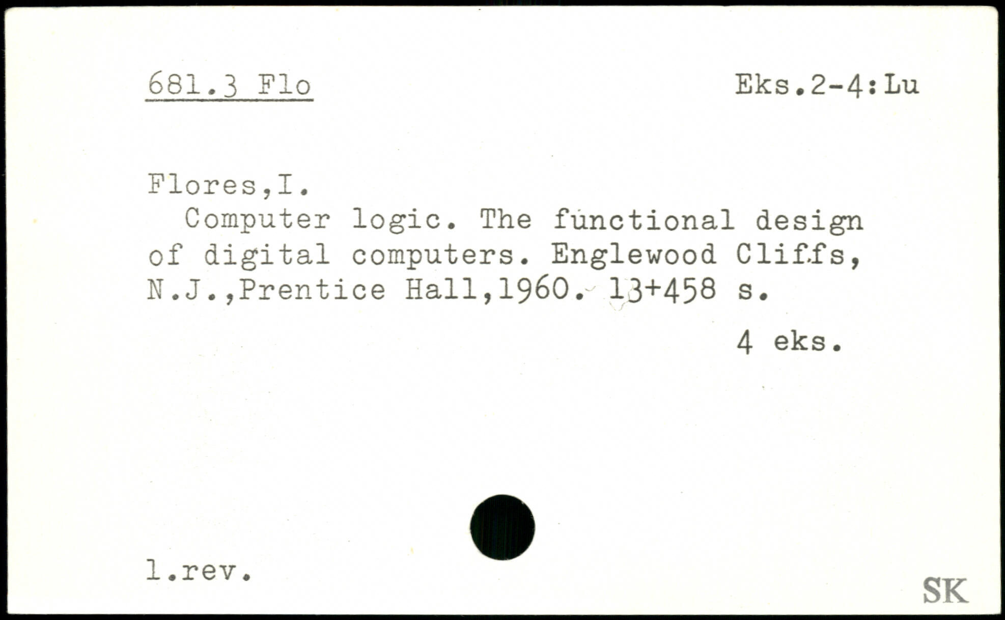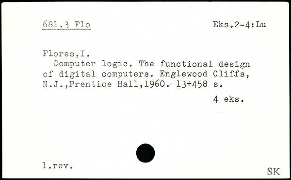 Computer logic. The functional design of digital computers. Englewood Clif.fs