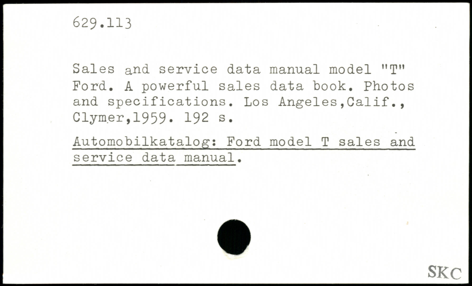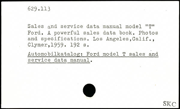 Sales and service data manual model "T" Ford. A powerful sales data book. Photos and specifications. Los Angeles,Calif., Clym.er ,1959.