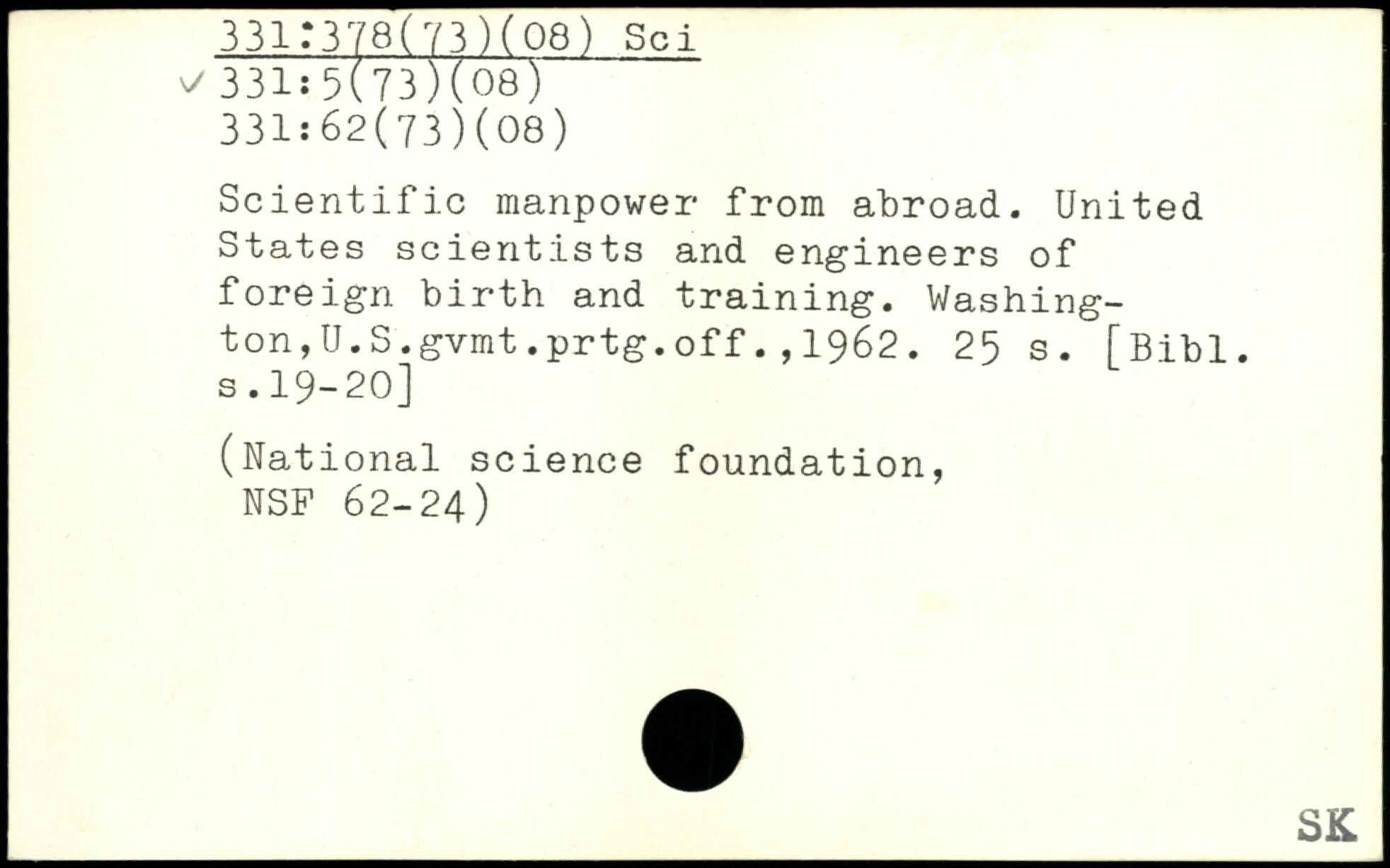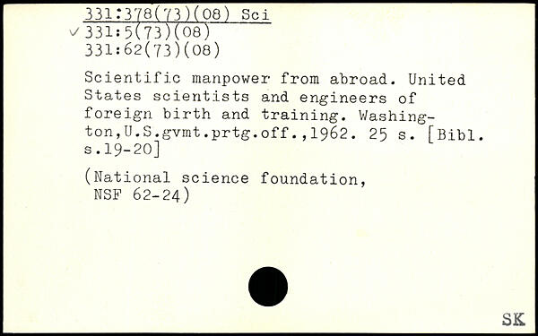 Scientific manpower from abroad. United States scientists and engineers of foreign birth and training. Washington ,U.S.gvmt.prtg.off.,1962.