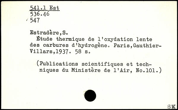 Estradère,S, Étude thermique de 1'oxydation lente des carbures d'hydrogénée