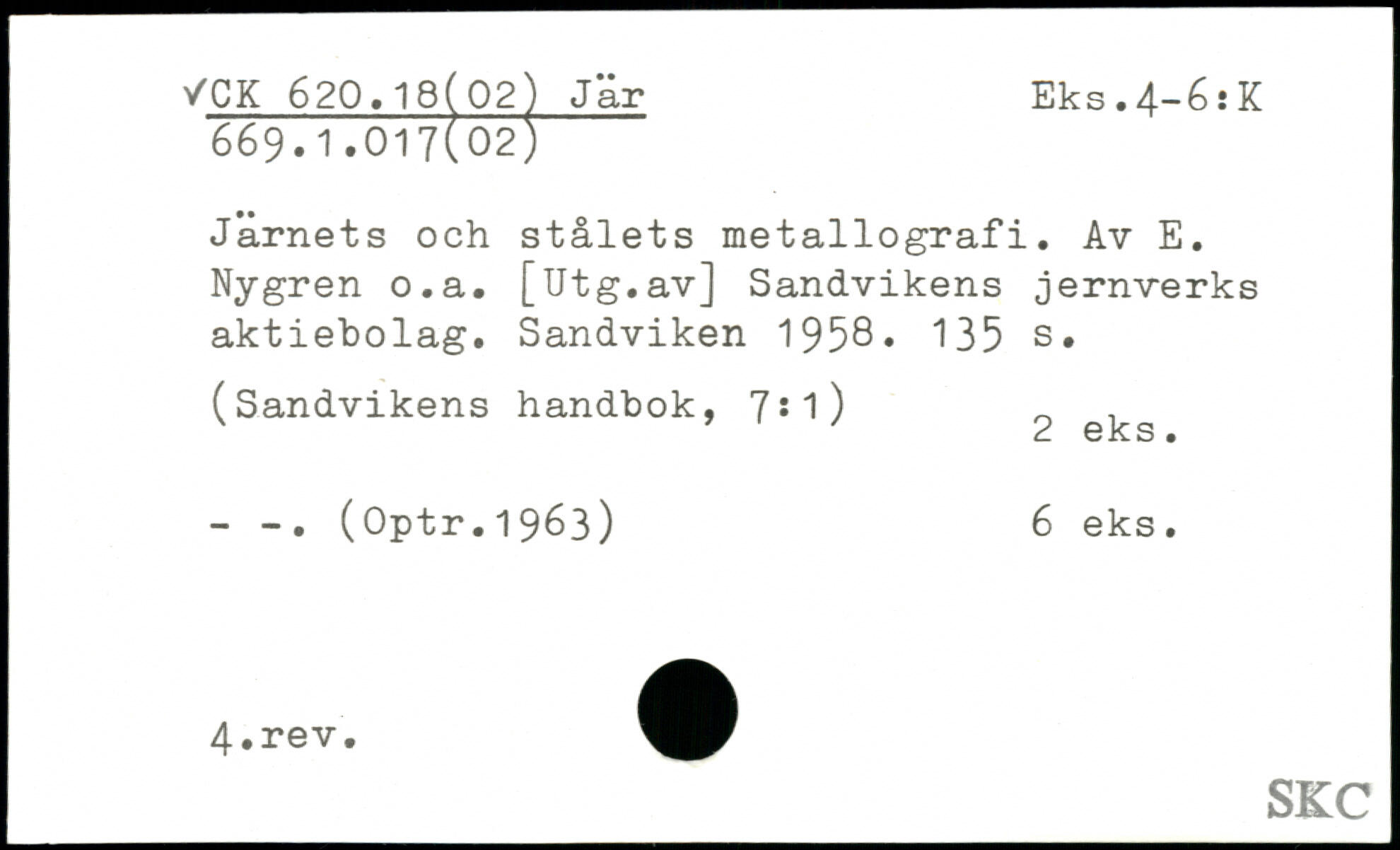 Järnets och stålets metallografi. Av E. Nygren o.a. [Utg.av] Sandvikens jernverks aktiebolag. Sandviken 1958.