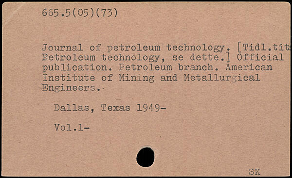 Journal of petroleum technology. [Tidl.tit Petroleum technology, se dette.] Official publication. Petroleum branch. American Institute of Mining and Metallurgical Engineers.. . Dallas, Texas 1949- Vol.l-