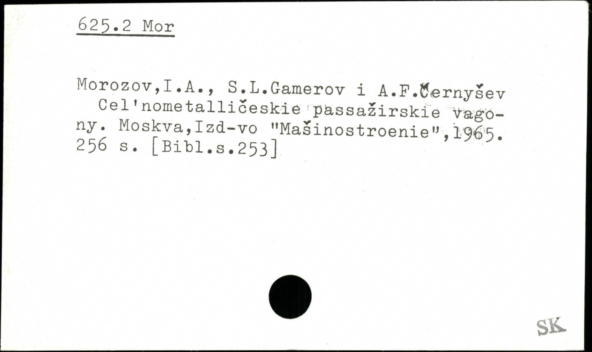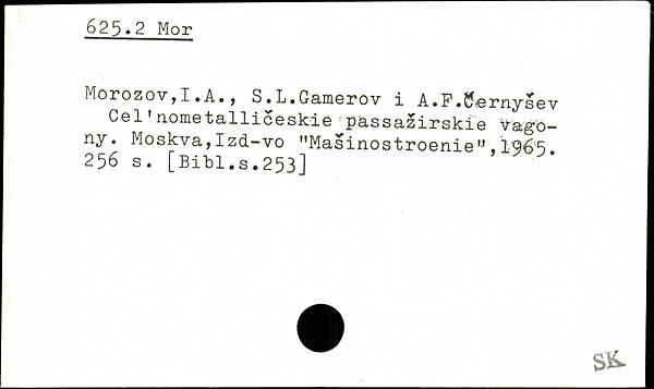 Morozov,I.A., S.L.Gamerov i A.F.(5<ernysev Cel1 nornetalliceskie passazirskie Ÿago-ny. Moskva,Izd-vo "Masinostroenie'1,1^965