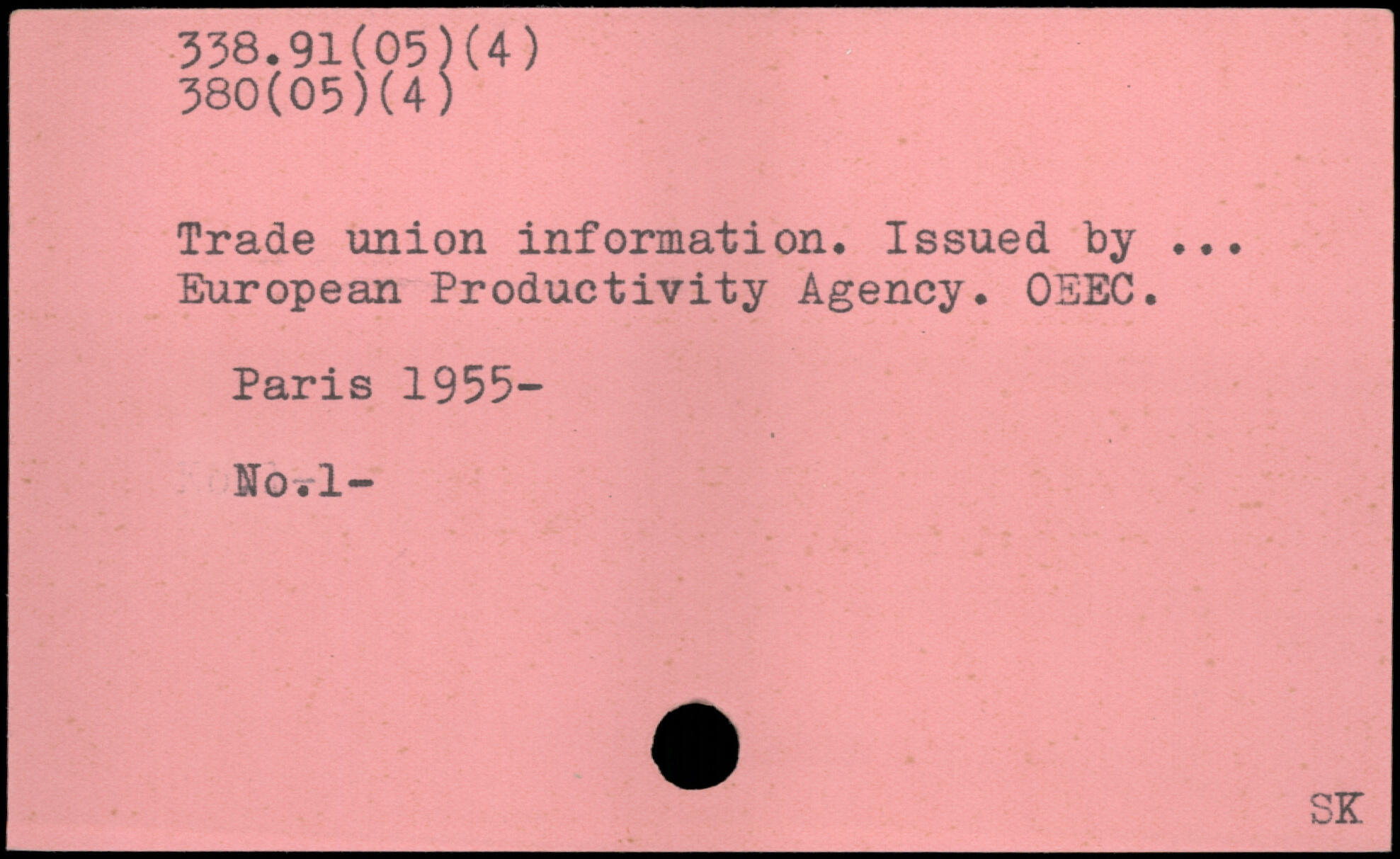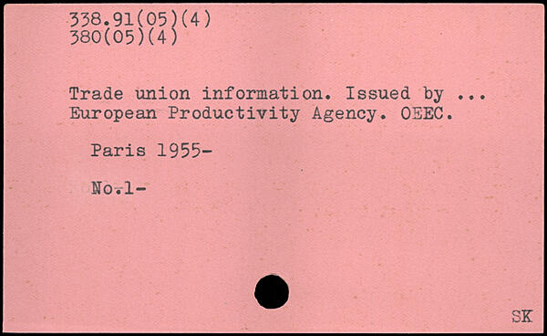 Trade union information. Issued by ... European Productivity Agency. 05EC.