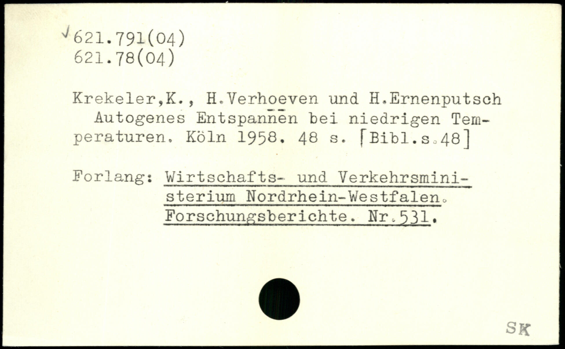 Krekeler,K., H-Verhoeven und H.Ernenputsch Autogenes Entspannen bei niedrigen Temperaturen. Köln 195Ö