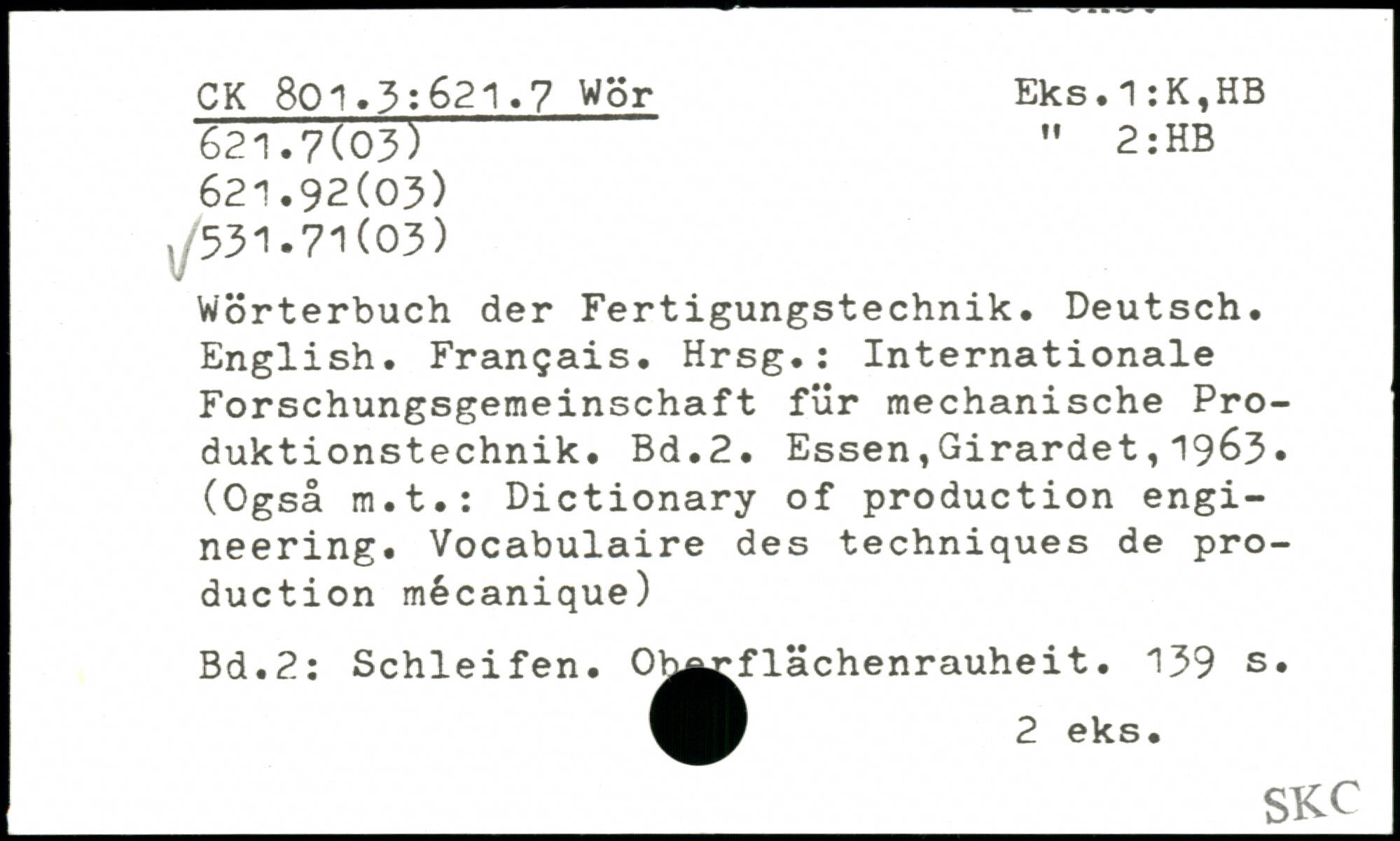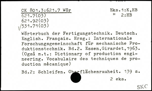 Wörterbuch der Fertigungstechnik. Deutsch. English. Français. Hrsg.: Internationale Forschungsgemeinschaft für mechanische Produktionstechnik.