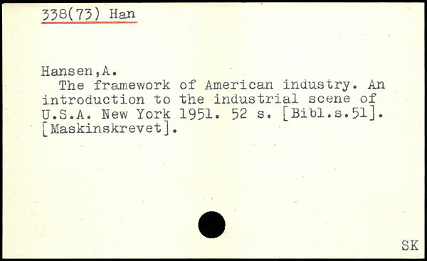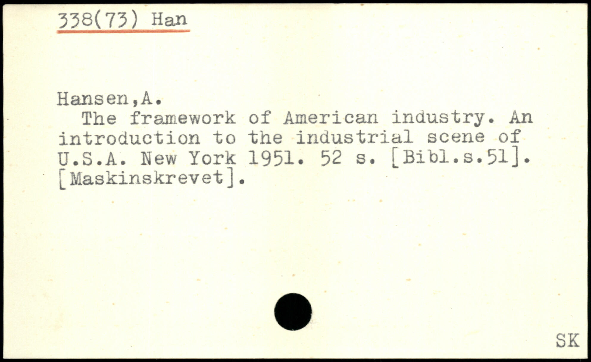 The framework of American industry. An introduction to the industrial scene of U.S.A. Hew York 1951.
