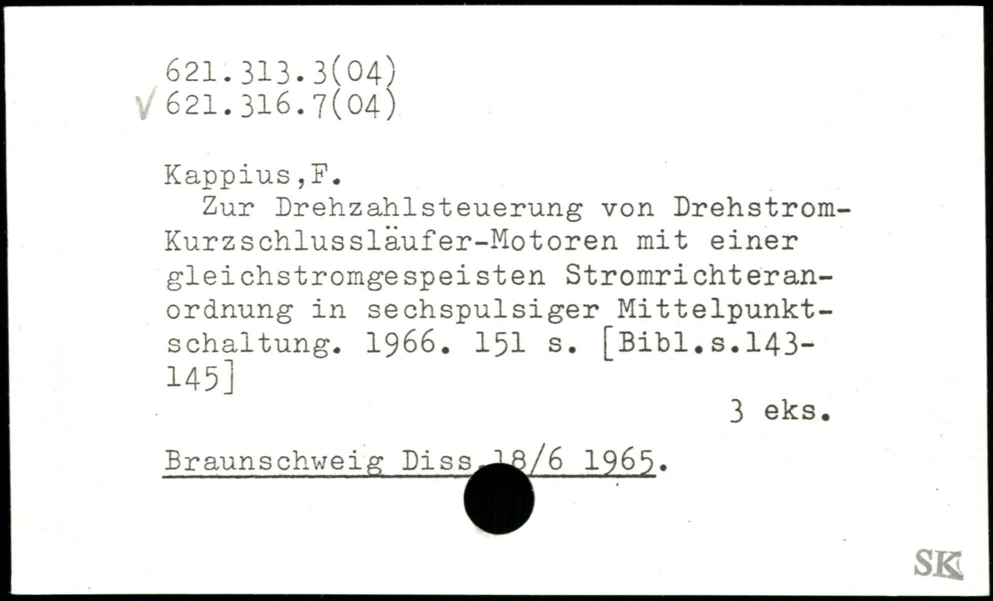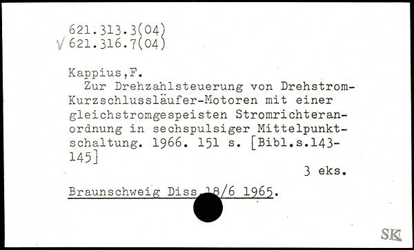 Zur Drehzahlsteuerung von Drehstrom-Kurz schlussläufer-Motoren mit einer gleichstromgespeisten Stromrichteran-ordnung in sechspulsiger Mittelpunktschaltung. 1966.