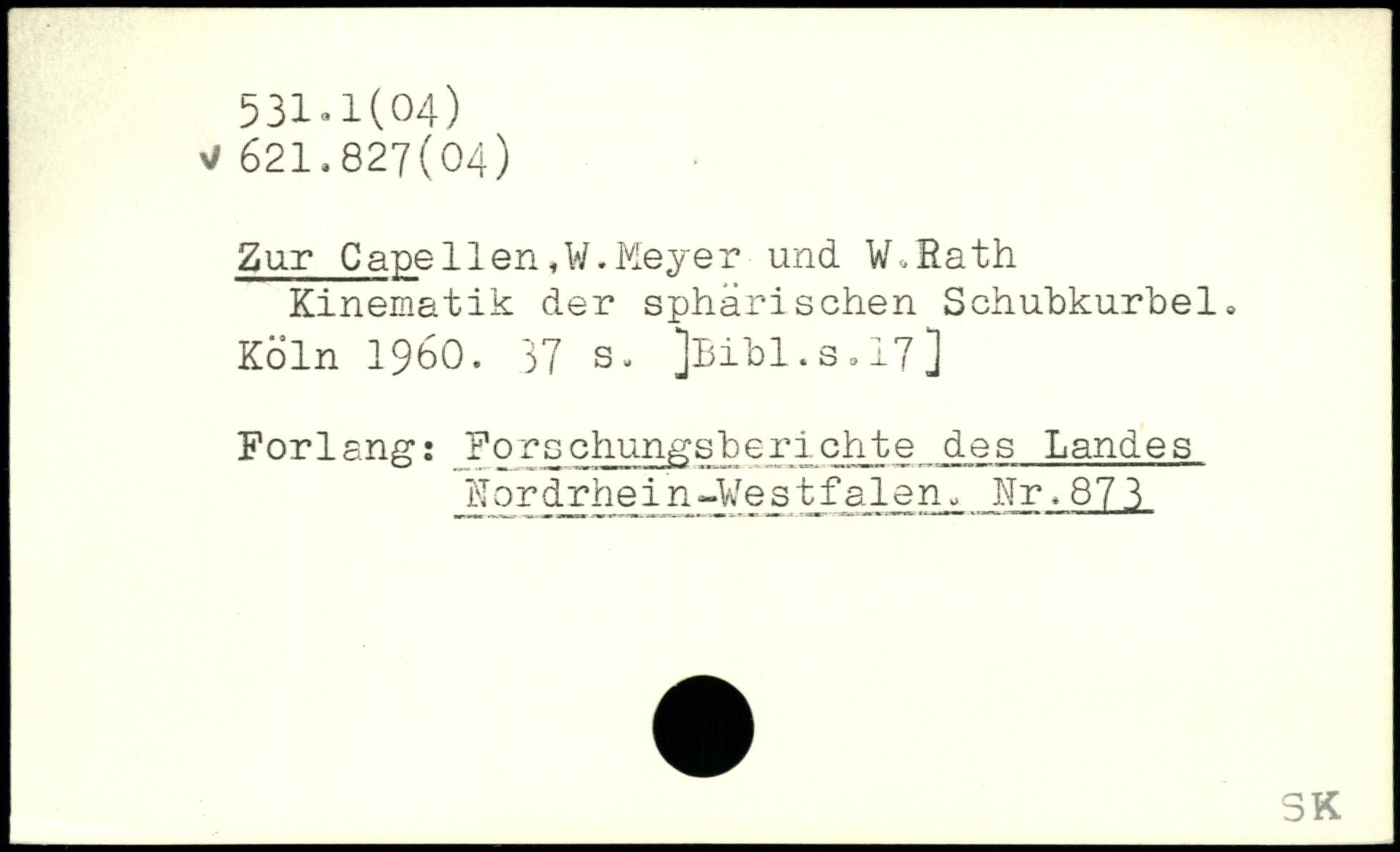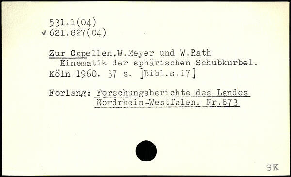 Zar Capellen ,W. Meyer und W,Eath Kinematik der sphärischen Schubkurbel