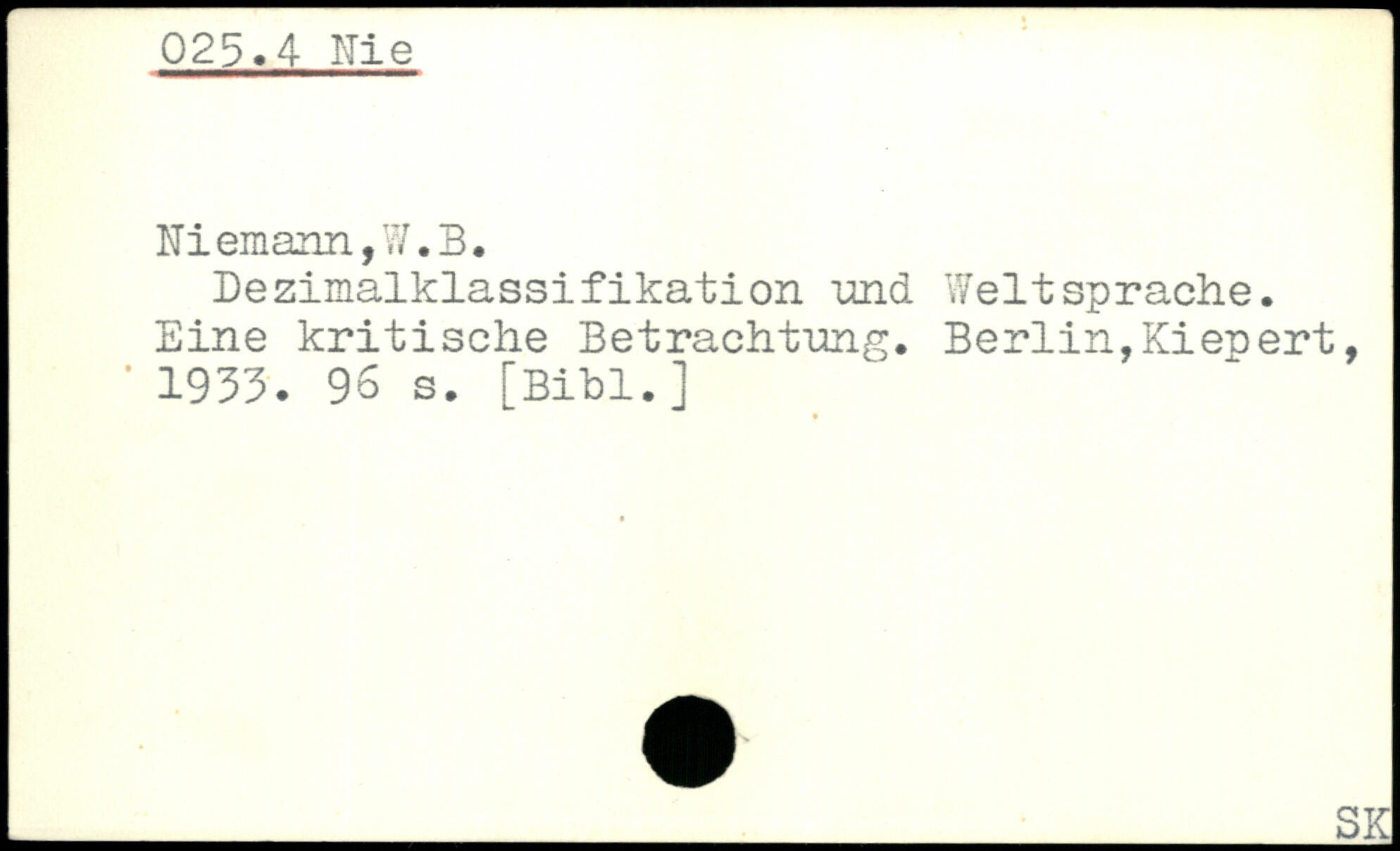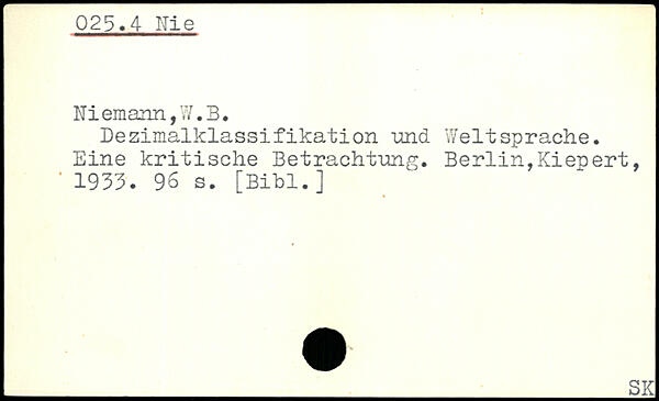 Dezimalklassifikation -und Weltsprache. Eine kritische Betrachtung. Berlin,Kienert, ' 1933.