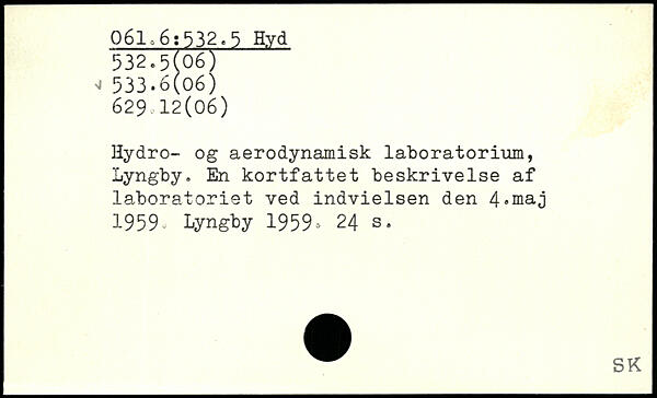 Hydro- og aerodynamisk laboratorium, Lyngby. En kortfattet beskrivelse af laboratoriet ved indvielsen den 4,niaj 1959o Lyngby 1959-