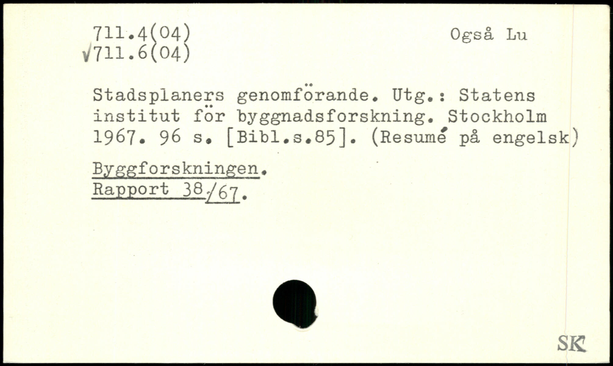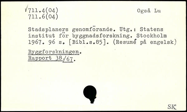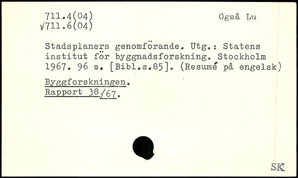 Stadsplaners genomforande. Utg.: Statens institut for byggnadsforskning.