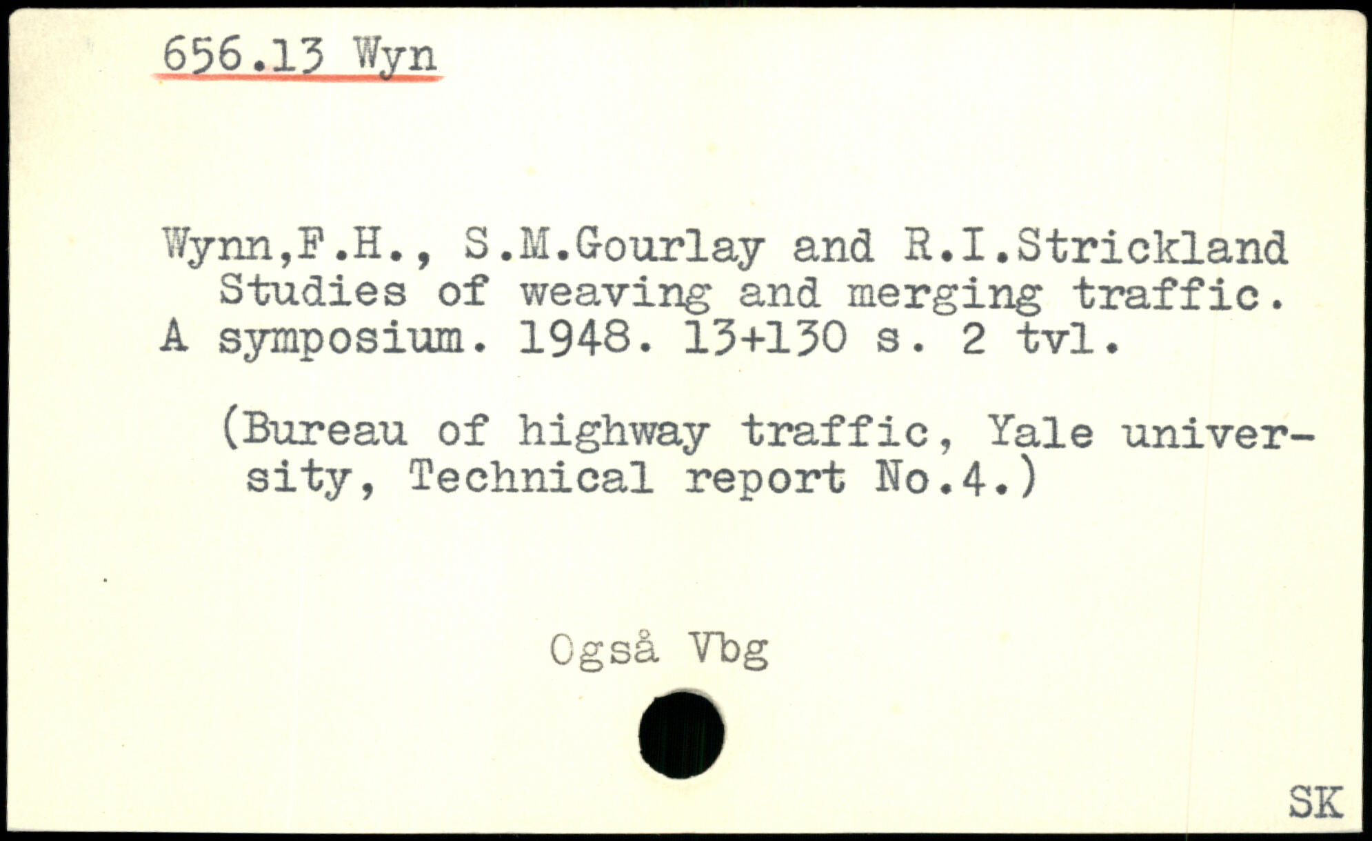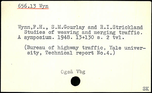 Wynn,F.H., S.H.G-ourlay and R.I.Strickland Studies of weaving and merging traffic. A symposium. 1948.