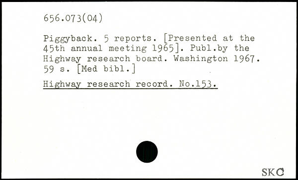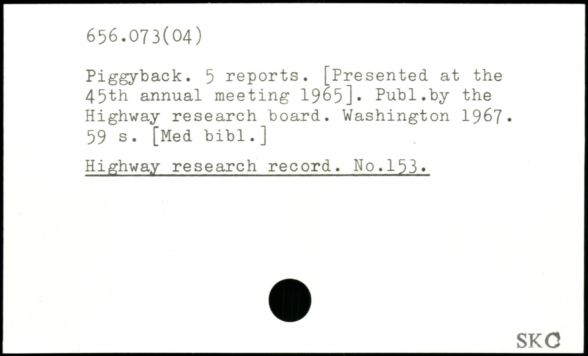 Piggyback. 5 reports. [Presented at the 45th annual meeting 1965]