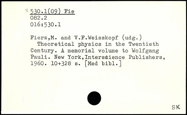 Fierz,M. and 'WF.Weisskopf (udg. ) Theoretical physics in the Twentieth Century. A memorial volume to Wolfgang Pauli.