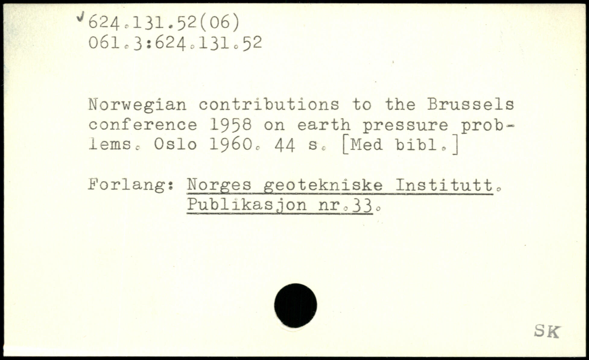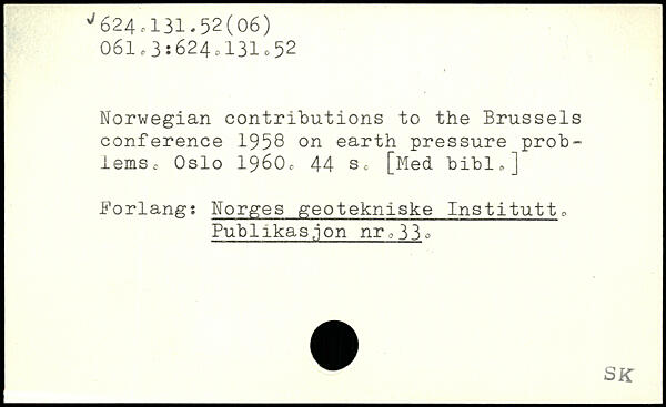 Norwegian contributions to the Brussels conference 1958 on earth pressure problems c Oslo 1960c