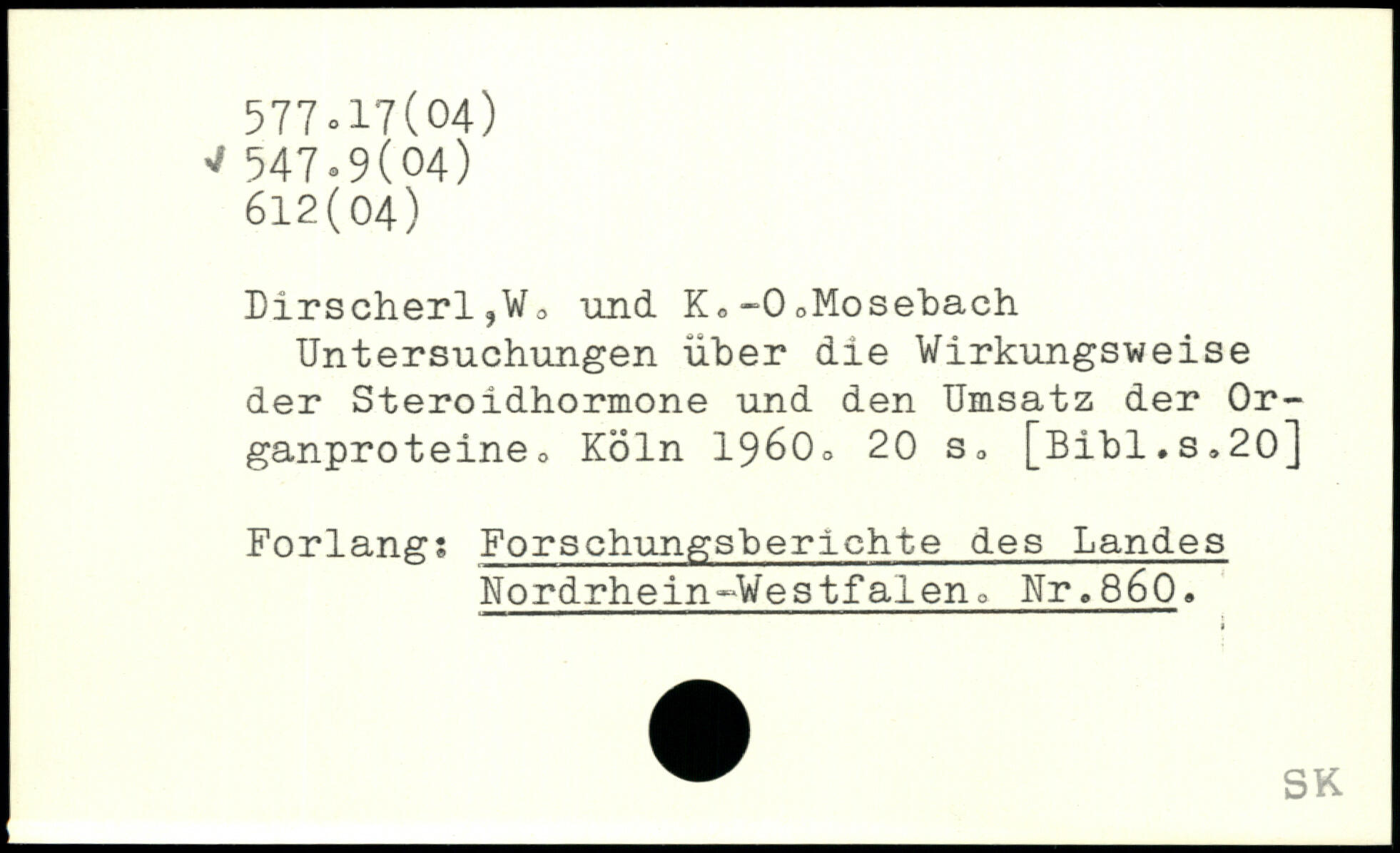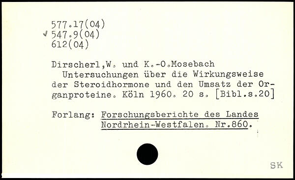 Dirscherl,Wo und. K,-0oMosebach Untersuchungen über die Wirkungsweise der Steroidhormone und den Umsatz der Or-ganproteine.