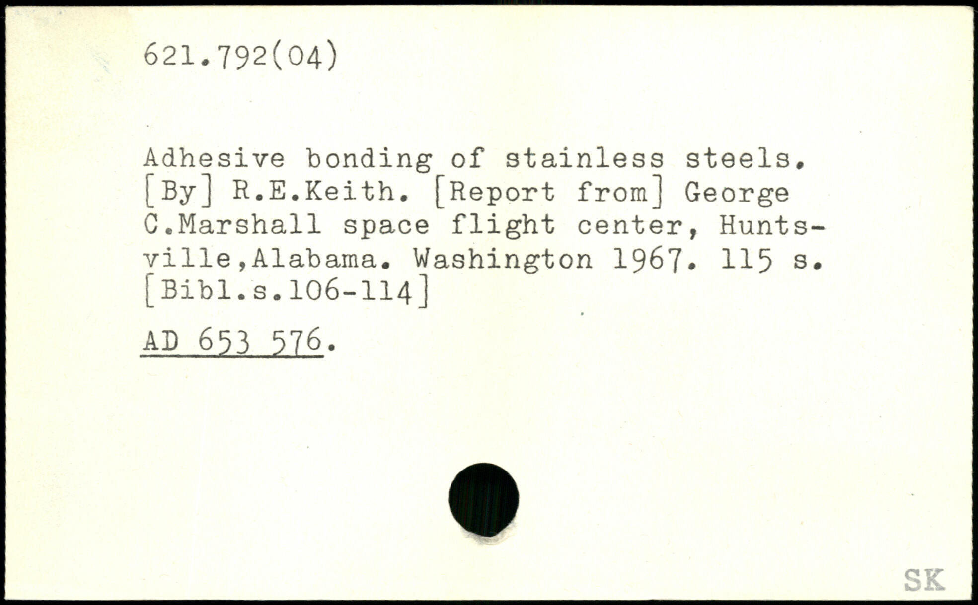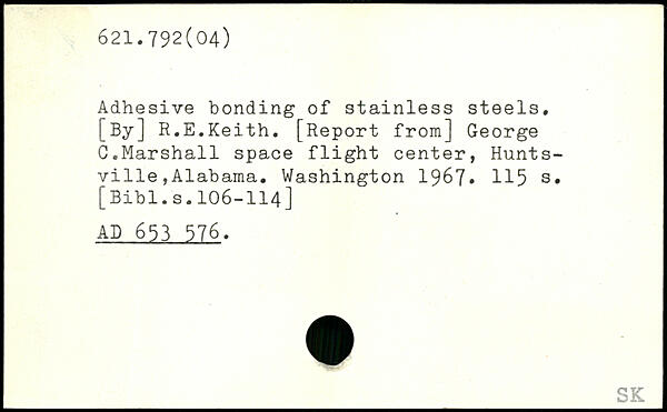 Adhesive bonding of stainless steels. [By] R.E.Keith. [Report from] George G.Marshall space flight center, Huntsville , Alabama.