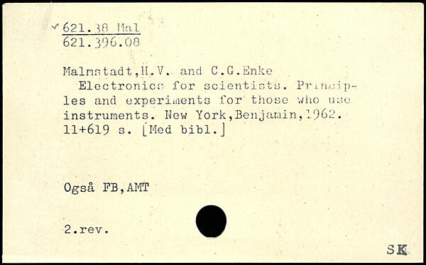 Mainstad t, II. V. and C.G.Enke Electronics for scientists. Principles and experiments for those who use instruments.