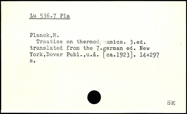 Treatise on thermoat amics. 3-ed. translated from the 7,german ed. New York,Dover Publ.,u.a. [ca.1923]