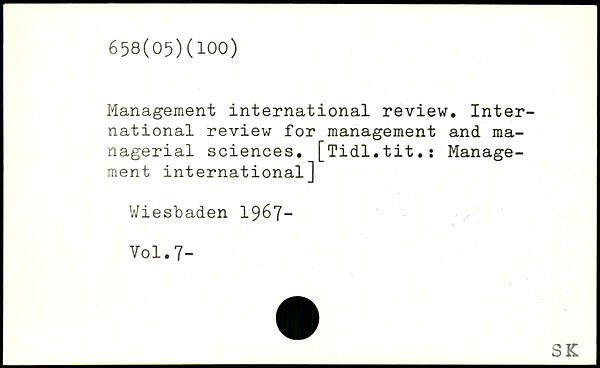 Management international review. International review for management and managerial sciences. [Tidl.tit.: Management international] Wiesbaden 19 6 7 —