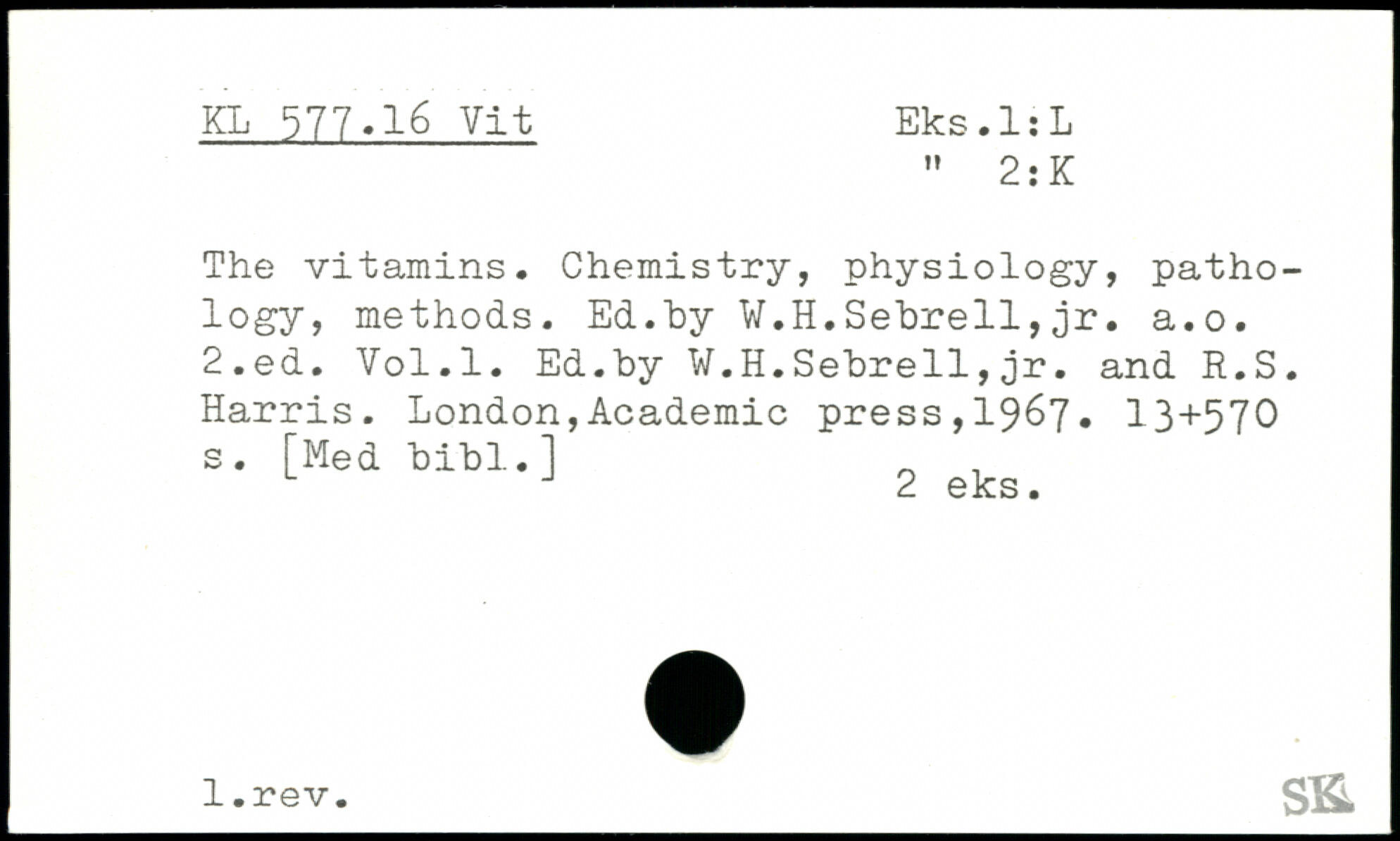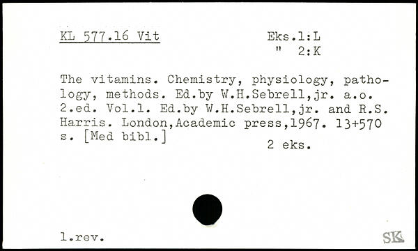 The vitamins. Chemistry, physiology, pathology, methods. Ed.by V.H.Sehrell,jr. a.o.