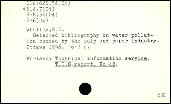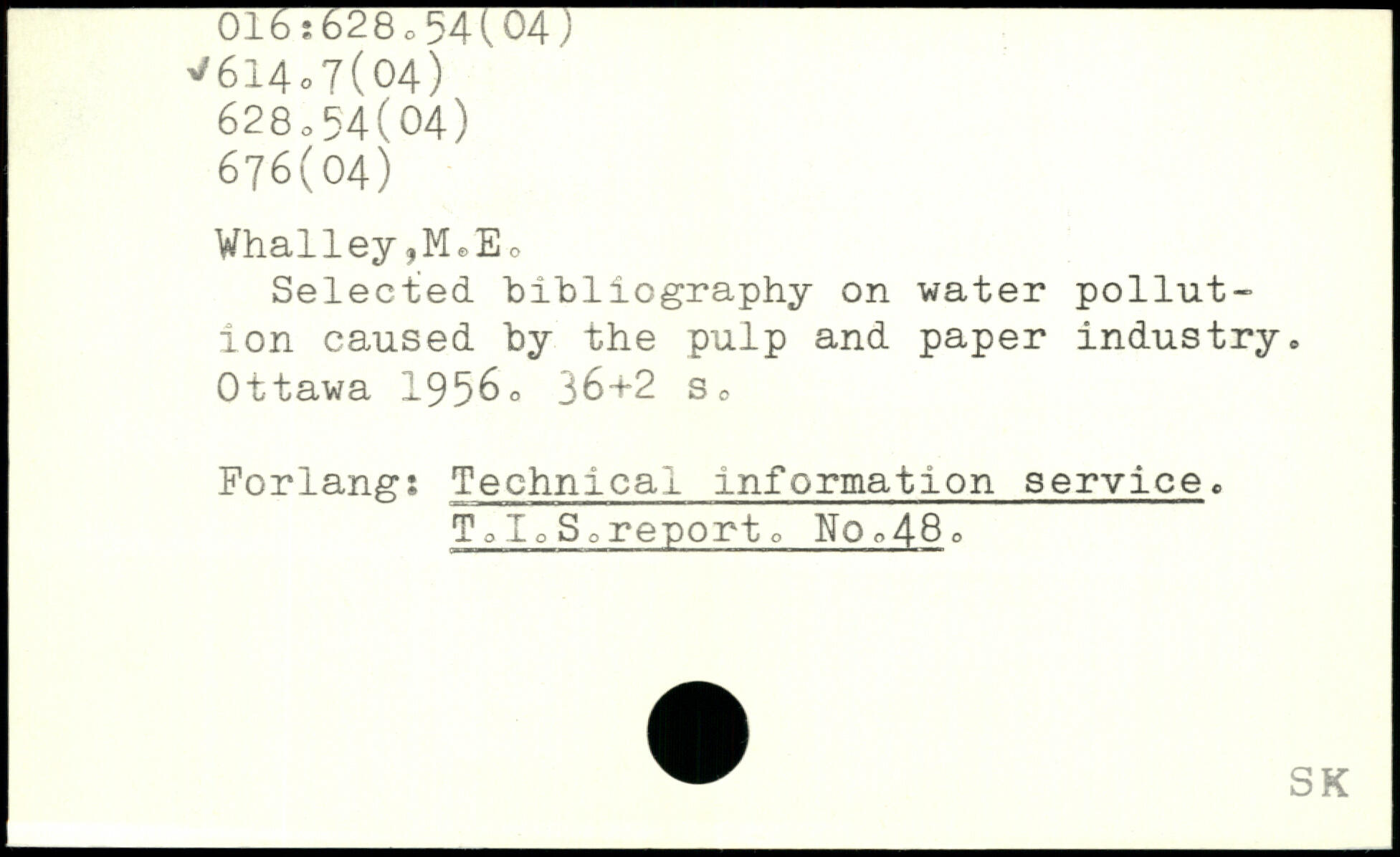 Selected bibliography on water pollution caused by the pulp and paper industrye