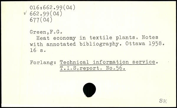 Heat economy in textile plants, Notes with annotated bibliography.