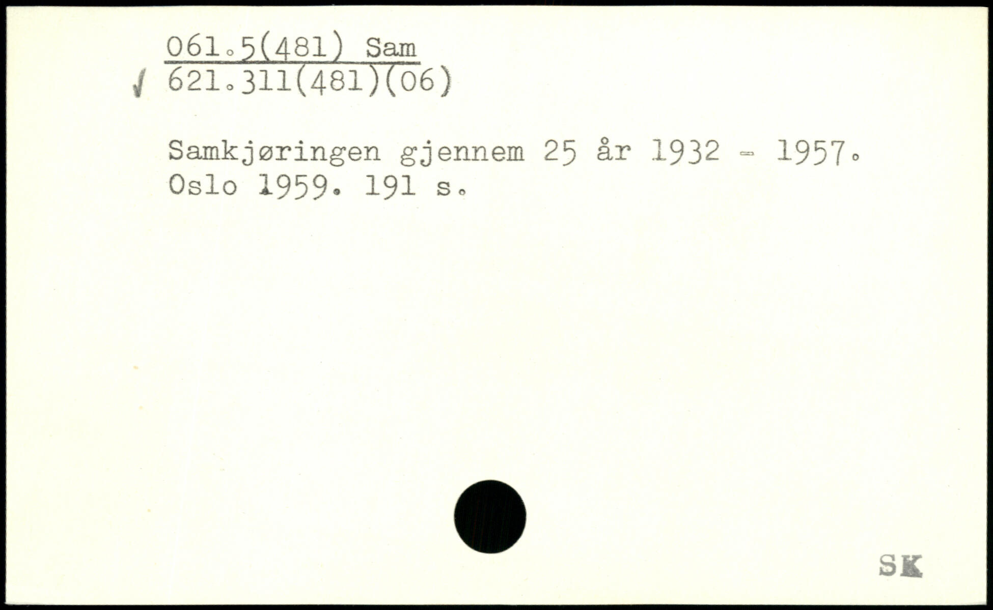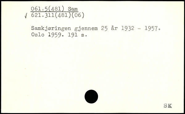 Samkjøringen gjennem 25 år .1932 - 1957, Oslo 1959.