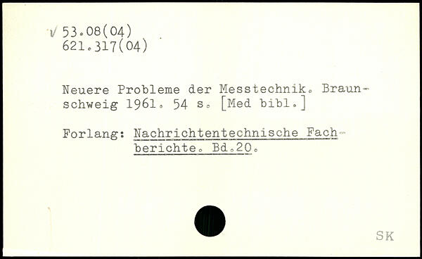 Neuere Probleme der Messtechnik. Braun-schweig 1961