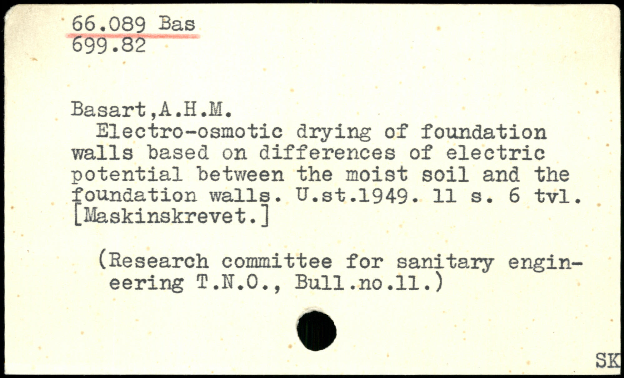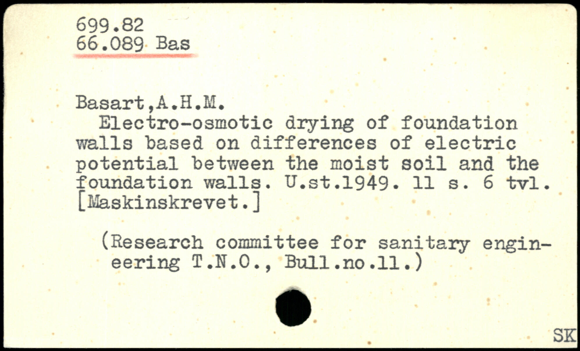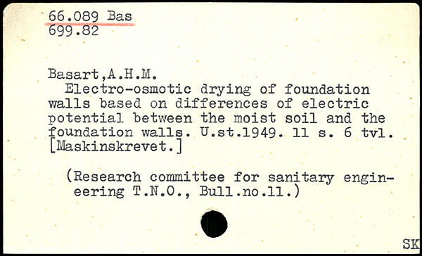 Electro-osmotic drying of foundation walls based on differences of electric potential between the moist soil and the foundation walls. U.st.1949.