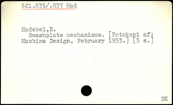 Swashplate mechanisms. [Fotokopi af: Machine Design, February 1953.] [